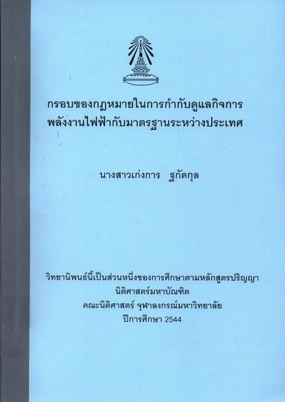 กรอบของกฎหมายในการกำกับดูแลกิจการพลังงานไฟฟ้ากับมาตรฐานระหว่างประเทศ / เก่งการ ฐกัดกุล