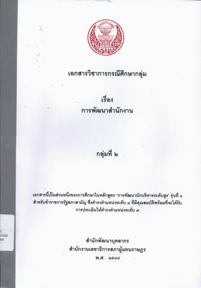 การพัฒนาสำนักงาน : เอกสารวิชาการกรณีศึกษากลุ่ม [กลุ่มที่ 2] / สำนักพัฒนาบุคลากร สำนักงานเลขาธิการสภาผู้แทนราษฎร,