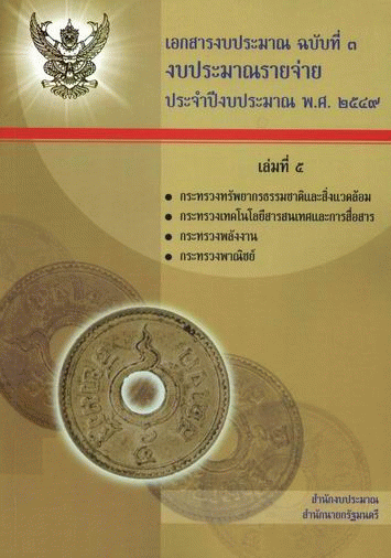 เอกสารงบประมาณ ฉบับที่ 3 งบประมาณรายจ่ายประจำปีงบประมาณ พ.ศ. 2549 เล่มที่ 5 กระทรวงทรัพยากรธรรมชาติและสิ่งแวดล้อม กระทรวงเทคโนโลยีสารสนเทศและการสื่อสาร กระทรวงพลังงาน กระทรวงพาณิชย์ / สำนักงบประมาณ.