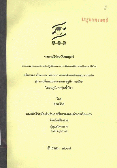 เชียงของ เวียงแก่น : พัฒนาการของสังคมชายขอบจากอดีต สู่การเปลี่ยนแปลงทางเศรษฐกิจการเมืองในอนุภูมิภาคลุ่มน้ำโขง / นพรัตน์ ละมุล.