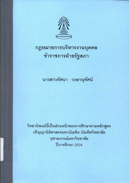 กฎหมายการบริหารงานบุคคลข้าราชการฝ่ายรัฐสภา / ทัศนา วงษานุทัศน์.