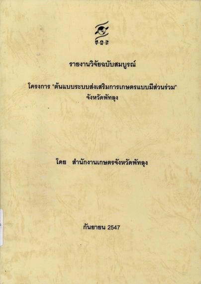 โครงการ "ต้นแบบระบบส่งเสริมการเกษตรแบบมีส่วนร่วม" จังหวัดพัทลุง / ยงยุทธ สุวรรณฤกษ์.
