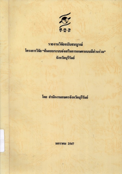 โครงการวิจัย "ต้นแบบระบบส่งเสริมการเกษตรแบบมีส่วนร่วม" จังหวัดบุรีรัมย์ / สมบูรณ์ ซารัมย์.