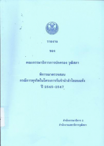 รายงานของคณะกรรมาธิการการปกครอง วุฒิสภา พิจารณาตรวจสอบ กรณีการทุจริตในโครงการรับจำนำลำไยอบแห้ง ปี 2545-2547 / สำนักกรรมาธิการ 2 สำนักงานเลขาธิการวุฒิสภา.