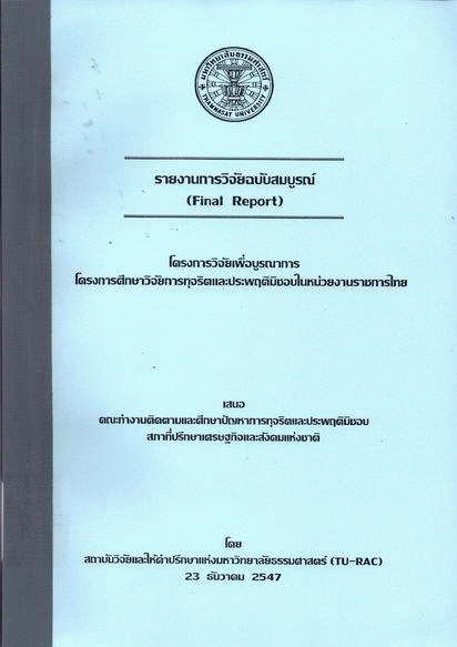โครงการวิจัยเพื่อบูรณาการ โครงการศึกษาวิจัยการทุจริตและประพฤติมิชอบในหน่วยงานราชการไทย / สถาบันวิจัยและให้คำปรึกษาแห่งมหาวิทยาลัยธรรมศาสตร์ (TU-RAC).