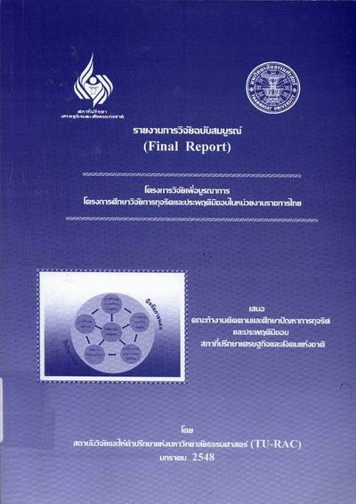 โครงการวิจัยเพื่อบูรณาการ โครงการศึกษาวิจัยการทุจริตและประพฤติมิชอบในหน่วยงานราชการไทย / สถาบันวิจัยและให้คำปรึกษาแห่งมหาวิทยาลัยธรรมศาสตร์ (TU-RAC).