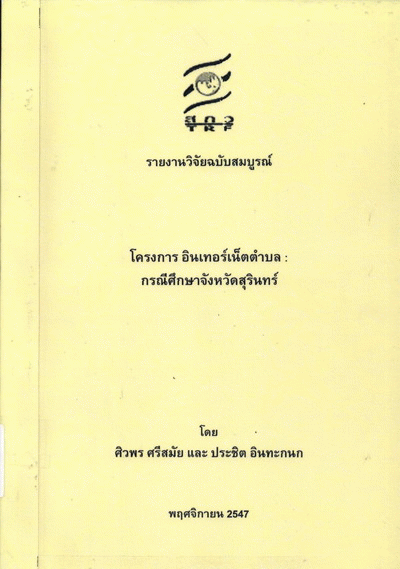 โครงการอินเทอร์เน็ตตำบล : กรณีศึกษาจังหวัดสุรินทร์ / ศิวพร ศรีสมัย และประชิต อินทะกนก.