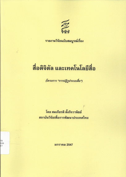 สื่อดิจิตัล และเทคโนโลยีสื่อ (โครงการ "การปฏิรูประบบสื่อ") / สมเกียรติ ตั้งกิจวานิชย์.