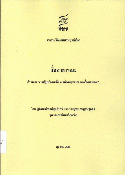 สื่อสาธารณะ (โครงการ "การปฏิรูประบบสื่อ : การพัฒนาบุคลากรและสื่อสาธารณะ") ฐิตินันท์ พงษ์สุทธิรักษ์ และวีระยุทธ กาญจน์ชูฉัตร.