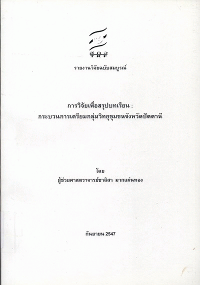การวิจัยเพื่อสรุปบทเรียน : กระบวนการเตรียมกลุ่มวิทยุชุมชนจังหวัดปัตตานี/ ชาลิสา มากแผ่นทอง.
