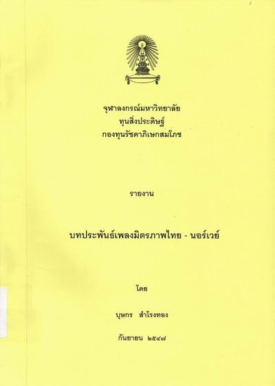 บทประพันธ์เพลงมิตรภาพไทย-นอร์เวย์ / บุษกร สำโรงทอง.