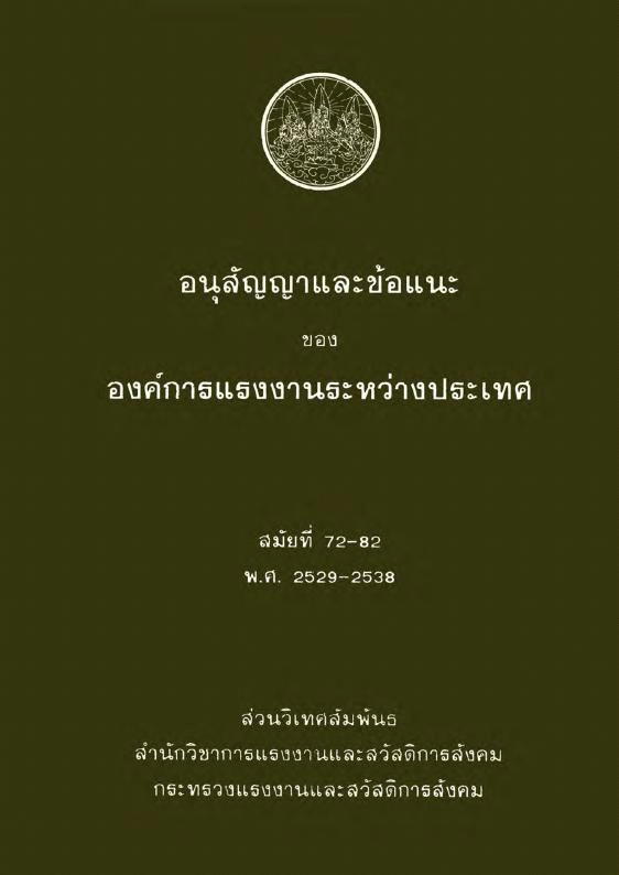 อนุสัญญาและข้อแนะขององค์การแรงงานระหว่างประเทศ สมัยที่ 72-82 พ.ศ. 2529-2538 / สำนักวิชาการแรงงานและสวัสดิการสังคม กระทรวงแรงงานและสวัสดิการสังคม.