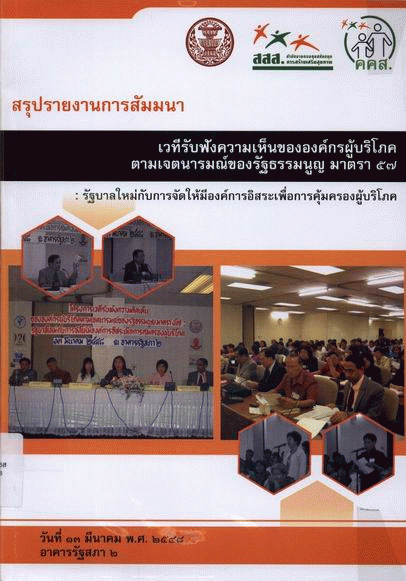 สรุปรายงานเวทีรับฟังความเห็นขององค์กรผู้บริโภคตามเจตนารมณ์ของรัฐธรรมนูญ มาตรา 57 : รัฐบาลใหม่กับการจัดให้มีองค์กรอิสระเพื่อการคุ้มครองผู้บริโภค / คณะอนุกรรมาธิการศึกษาและติดตามการคุ้มครองผู้บริโภค ในคณะกรรมาธิการการสาธารณสุข วุฒิสภา.