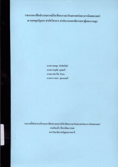 รายงานการฝึกประสบการณ์วิชาชีพบรรณารักษศาสตร์และสารนิเทศศาสตร์ ณ หอสมุดรัฐสภา สำนักวิชาการ สำนักงานเลขาธิการสภาผู้แทนราษฎร