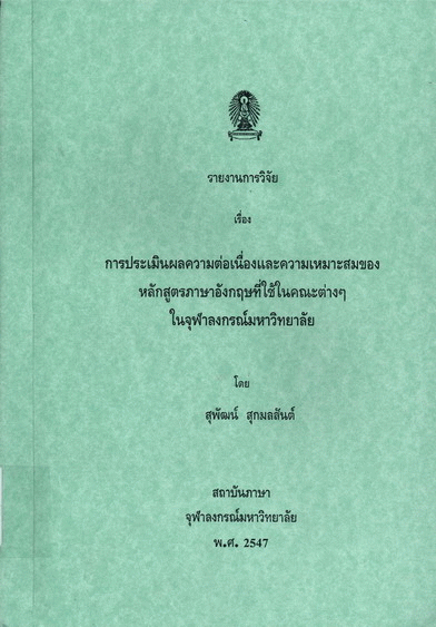 การประเมินผลความต่อเนื่องและความเหมาะสมของหลักสูตรภาษาอังกฤษที่ใช้ในคณะต่าง ๆ ในจุฬาลงกรณ์มหาวิทยาลัย / สุพัฒน์ สุกมลสันต์.