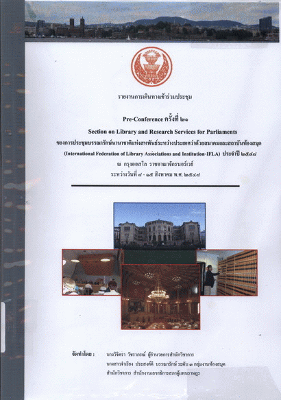 รายงานการเดินทางเข้าร่วมประชุม Pre-Conference ครั้งที่ 21 Section on Library and Research Services for Parliaments ของการประชุมบรรณารักษ์นานาชาติแห่งสหพันธ์ระหว่างประเทศว่าด้วยสมาคมและสถาบันห้องสมุด ประจำปี 2548 ณ กรุงออสโล ราชอาณาจักรนอร์เวย์ ระหว่างวันที่ 8-15 สิงหาคม พ.ศ. 2548 / สำนักวิชาการ สำนักงานเลขาธิการสภาผู้แทนราษฎร.