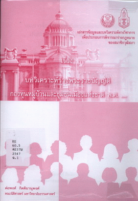 บทวิเคราะห์ร่างพระราชบัญญัติกองทุนหมู่บ้านและชุมชนเมืองแห่งชาติ พ.ศ. .... : เอกสารข้อมูลและบทวิเคราะห์ทางวิชาการเพื่อประกอบการพิจารณาร่างกฎหมายของสมาชิกวุฒิสภา / ต่อพงศ์ กิตติยานุพงศ์ ; สำนักงานเลขาธิการวุฒิสภา.