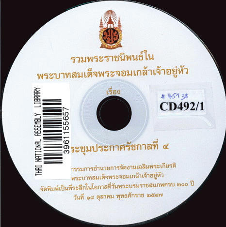 รวมพระราชนิพนธ์ในพระบาทสมเด็จพระจอมเกล้าเจ้าอยู่หัว เรื่อง ประชุมประกาศรัชกาลที่ 4 [CD-ROM]