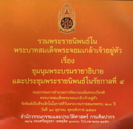 รวมพระราชนิพนธ์ในพระบาทสมเด็จพระจอมเกล้าเจ้าอยู่หัว เรื่อง ชุมนุมพระบรมราชาธิบายและประชุมพระราชนิพนธ์ในรัชกาลที่ 4 [CD-ROM]