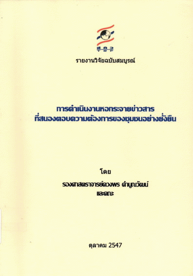 การดำเนินงานหอกระจายข่าวสารที่สนองตอบความต้องการของชุมชนอย่างยั่งยืน / ดวงพร คำนูณวัฒน์ และคณะ