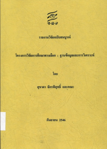 โครงการวิจัยการศึกษาทางเลือก : ฐานข้อมูลและการวิเคราะห์ / สุชาดา จักรพิสุทธิ์ และคณะ