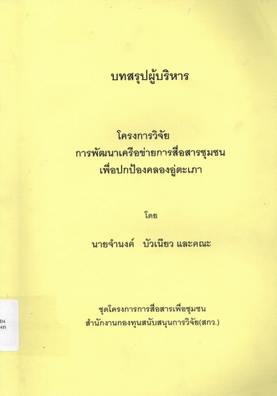 การพัฒนาเครือข่ายการสื่อสารชุมชนเพื่อปกป้องคลองอู่ตะเภา (บทสรุปสำหรับผู้บริหาร) / จำนงค์ บัวเนียว.