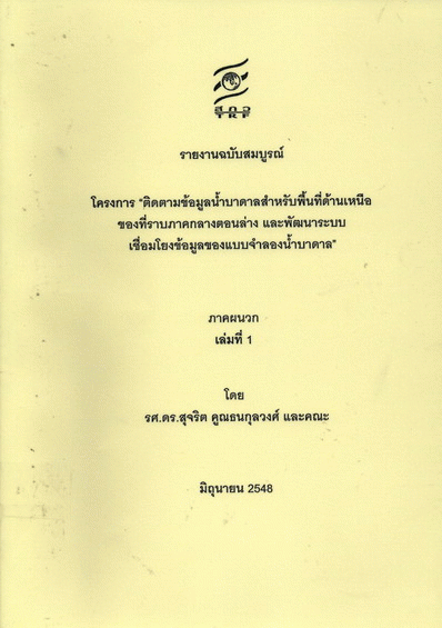โครงการ "ติดตามข้อมูลน้ำบาดาลสำหรับพื้นที่ด้านเหนือของที่ราบภาคกลางตอนล่าง และพัฒนาระบบเชื่อมโยงข้อมูลของแบบจำลองน้ำบาดาล" ภาคผนวก เล่มที่ 1 / สุจริต คูณธนกุลวงศ์ และคณะ