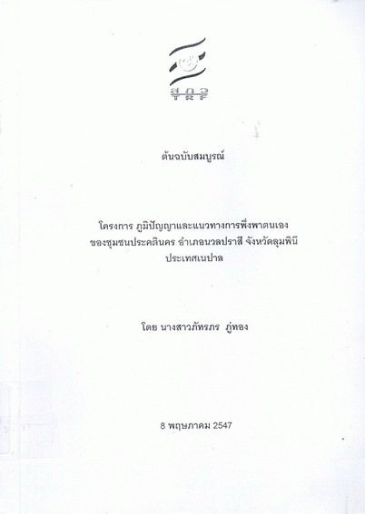 โครงการภูมิปัญญาและแนวทางการพึ่งพาตนเองของชุมชนประคตินคร อำเภอนวลปราสี จังหวัดลุมพินี ประเทศเนปาล / ภัทรภร ภู่ทอง .
