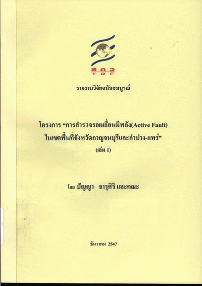 โครงการ "การสำรวจรอยเลื่อนมีพลัง (Active Fault) ในเขตพื้นที่จังหวัดกาญจนบุรีและลำปาง-แพร่" (ปีที่ 1) เล่ม 1 / ปัญญา จารุศิริ และคณะ.