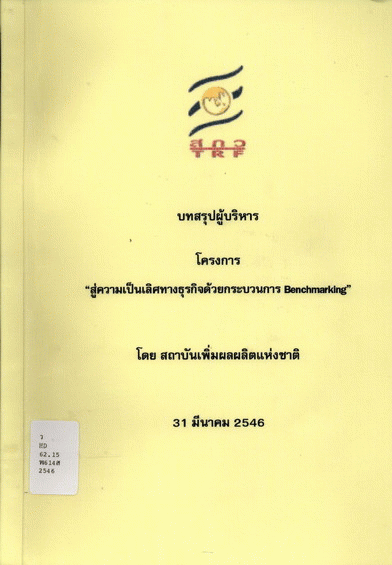 สู่ความเป็นเลิศทางธุรกิจด้วยกระบวนการ Benchmarking (บทสรุปผู้บริหาร) / สถาบันเพิ่มผลผลิตแห่งชาติ ; วรรณรจน์ อัตตาหกุล.