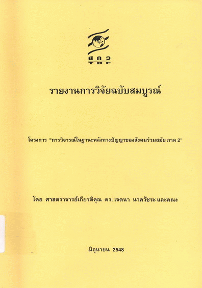 การวิจารณ์ในฐานะพลังทางปัญญาของสังคมร่วมสมัย ภาค 2 / เจตนา นาควัชระ และคณะ.