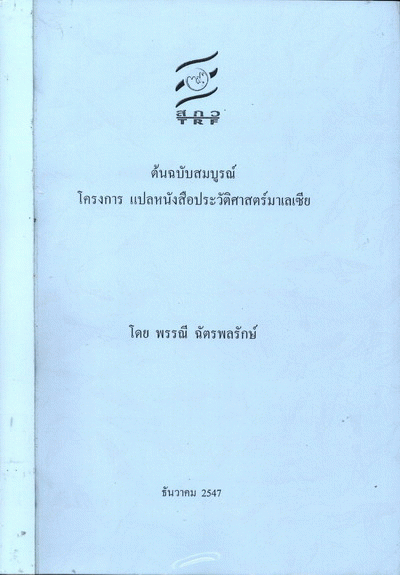 โครงการแปลหนังสือประวัติศาสตร์มาเลเซีย / พรรณี ฉัตรพลรักษ์.
