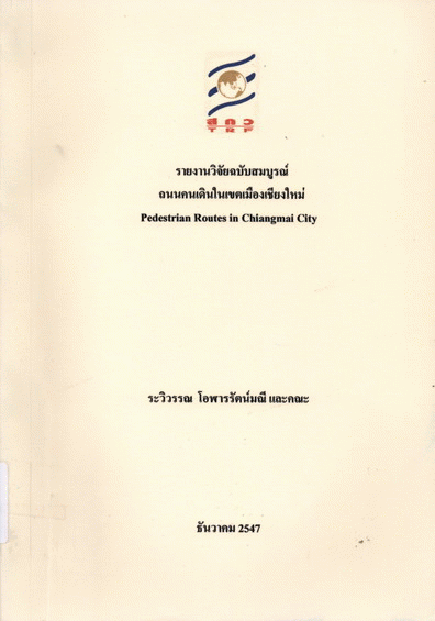ถนนคนเดินในเขตเมืองเชียงใหม่ = Dedestrian routes in Chiangmai City / ระวิวรรณ โอฬารรัตน์มณี และคณะ