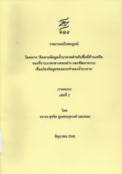 โครงการ "ติดตามข้อมูลน้ำบาดาลสำหรับพื้นที่ด้านเหนือของที่ราบภาคกลางตอนล่าง และพัฒนาระบบเชื่อมโยงข้อมูลของแบบจำลองน้ำบาดาล" ภาคผนวก เล่มที่ 2 / สุจริต คูณธนกุลวงศ์ และคณะ