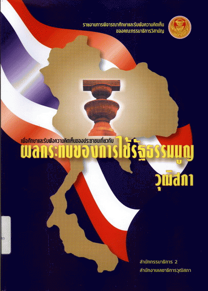 รายงานการพิจารณาศึกษาและรับฟังความคิดเห็นของคณะกรรมาธิการวิสามัญ เพื่อศึกษาและรับฟังความคิดเห็นของประชาชนเกี่ยวกับผลกระทบของการใช้รัฐธรรมนูญ วุฒิสภา / สำนักกรรมาธิการ 2 สำนักงานเลขาธิการวุฒิสภา.