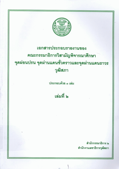 เอกสารประกอบรายงานของคณะกรรมาธิการวิสามัญพิจารณาศึกษาจุดผ่อนปรน จุดผ่านแดนชั่วคราวและจุดผ่านแดนถาวร วุฒิสภา เล่มที่ 2 / สำนักกรรมาธิการ 2 สำนักงานเลขาธิการวุฒิสภา.
