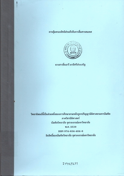การคุ้มครองสิทธิส่วนตัวกับการสื่อสารสนเทศ / ชื่นอารี มาลีศรีประเสริฐ.