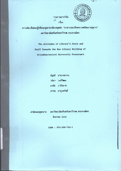 ความคิดเห็นของผู้ใช้และบุคลากรห้องสมุดต่อ "อาคารสมเด็จพระเทพรัตนราชสุดาฯ" มหาวิทยาลัยศรีนครินทรวิโรฒ ประสานมิตร = The attitudes of library's users and staff towards the new library building of Srinakharinwirot University prasarnmit / อัญชลี อำนาจธรรม...[และคนอื่น ๆ]