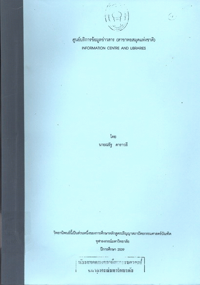 ศูนย์บริการข้อมูลข่าวสาร (สาขาหอสมุดแห่งชาติ) = Information centre and libraries / ณรัฐ ดาราวลี.