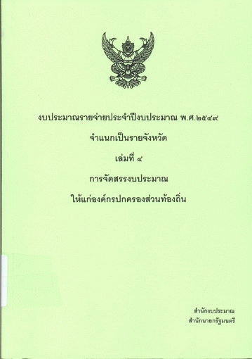 งบประมาณรายจ่ายประจำปีงบประมาณ พ.ศ. 2549 จำแนกเป็นรายจังหวัด เล่มที่ 4 การจัดสรรงบประมาณให้แก่องค์กรปกครองส่วนท้องถิ่น / สำนักงบประมาณ.