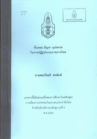 ขั้นตอน ปัญหา อุปสรรค ในการปฏิรูประบบราชการไทย / สมเกียรติ ศรลัมพ์.
