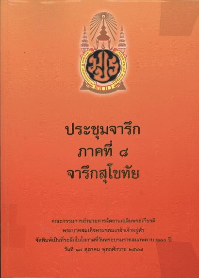 ประชุมจารึก ภาคที่ 8 จารึกสุโขทัย / คณะกรรมการอำนวยการจัดงานเฉลิมพระเกียรติ พระบาทสมเด็จพระจอมเกล้าเจ้าอยู่หัว.