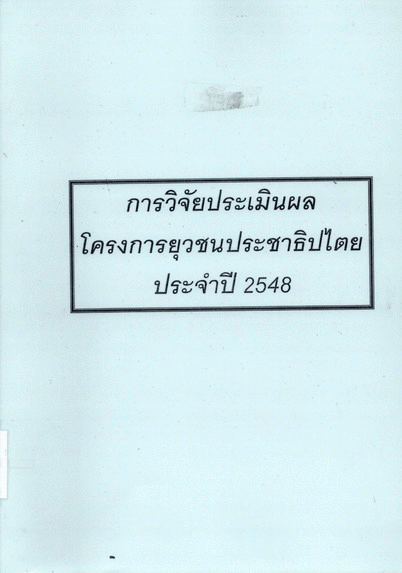 การวิจัยประเมินผลโครงการยุวชนประชาธิปไตย ประจำปี 2548 / กลุ่มงานบริการวิชาการ 1 สำนักวิชาการ สำนักงานเลขาธิการสภาผู้แทนราษฎร ; นพดล นุ้ยจุ้ย