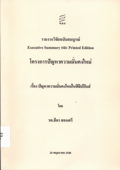 ปัญหาความมั่นคงใหม่ในฟิลิปปินส์ / สีดา สอนศรี.