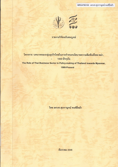 บทบาทของกลุ่มธุรกิจไทยในการกำหนดนโยบายความสัมพันธ์ไทย-พม่า, 1988-ปัจจุบัน / ศุภกาญจน์ พงศ์ยี่หล้า.