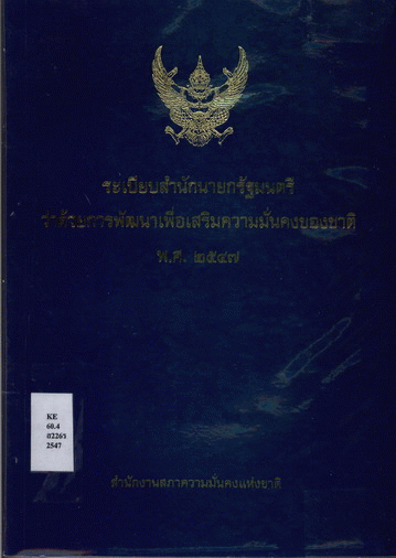 ระเบียบสำนักนายกรัฐมนตรีว่าด้วยการพัฒนาเพื่อเสริมความมั่นคงของชาติ พ.ศ. 2547 / สำนักงานสภาความมั่นคงแห่งชาติ.