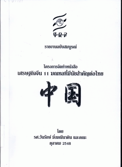 โครงการจัดทำหนังสือเศรษฐกิจจีน 11 มณฑลที่มีนัยสำคัญต่อไทย / วันรักษ์ มิ่งมณีนาคิน และคณะ.