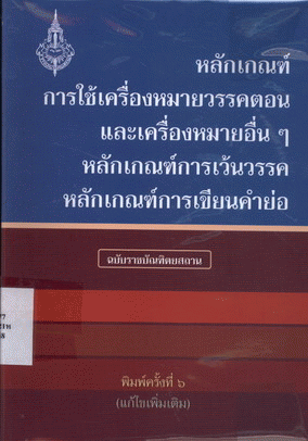 หลักเกณฑ์การใช้เครื่องหมายวรรคตอนและเครื่องหมายอื่น ๆ หลักเกณฑ์การเว้นวรรค หลักเกณฑ์การเขียนคำย่อ / ราชบัณฑิตยสถาน.