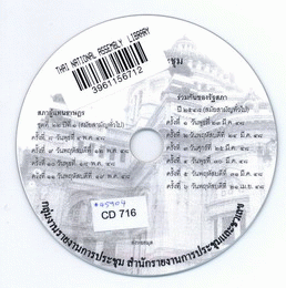 National Assembly Library of Thailand | Audio-Visual Materials collection | CD 716 (เรียกดูชั้นหนังสือ(เปิดด้านล่าง)) | พร้อมให้บริการ | 3961156712 |