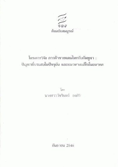 โครงการวิจัยการค้าชายแดนไทยกับกัมพูชา : ปัญหาที่ประสบในปัจจุบันและแนวทางแก้ไขในอนาคต / วัชรินทร์ ยงศิริ.
